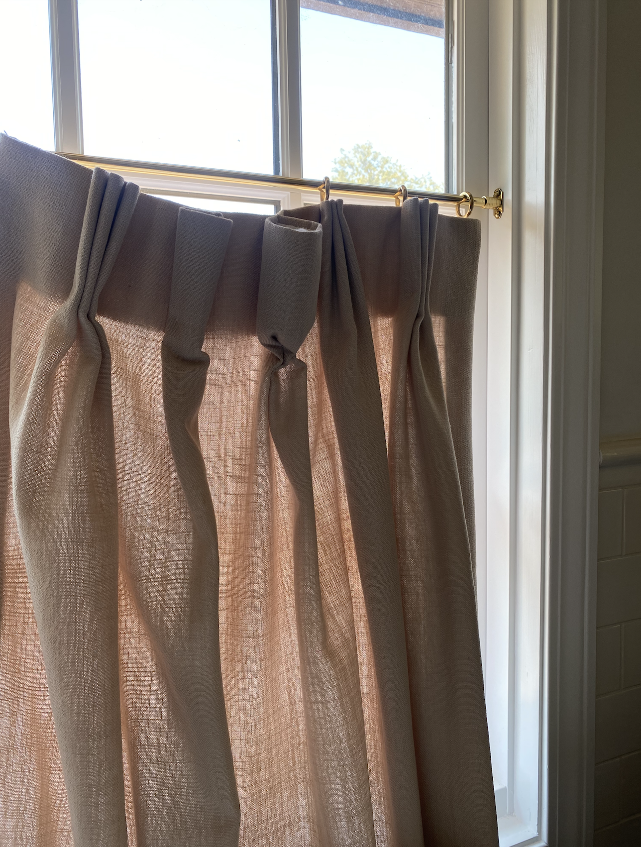 Our curtains are being custom made through a local drapery company. The fabric shown here is not what we’ll be using but they will be 2-finger Euro pleats lined with light filtering fabric. It took me a few tries to find brass curtain rings that were the smaller size. A lot of curtain ring descriptions show the dimensions to describe the curtain rod diameter that the rings will fit around – not the actual ring diameter. I eventually found the perfect ones from Van Dykes Restorers. Living in an older home and renovating our old rental properties, I’ve become very resourceful in sourcing and it feels good to share my sources with you.