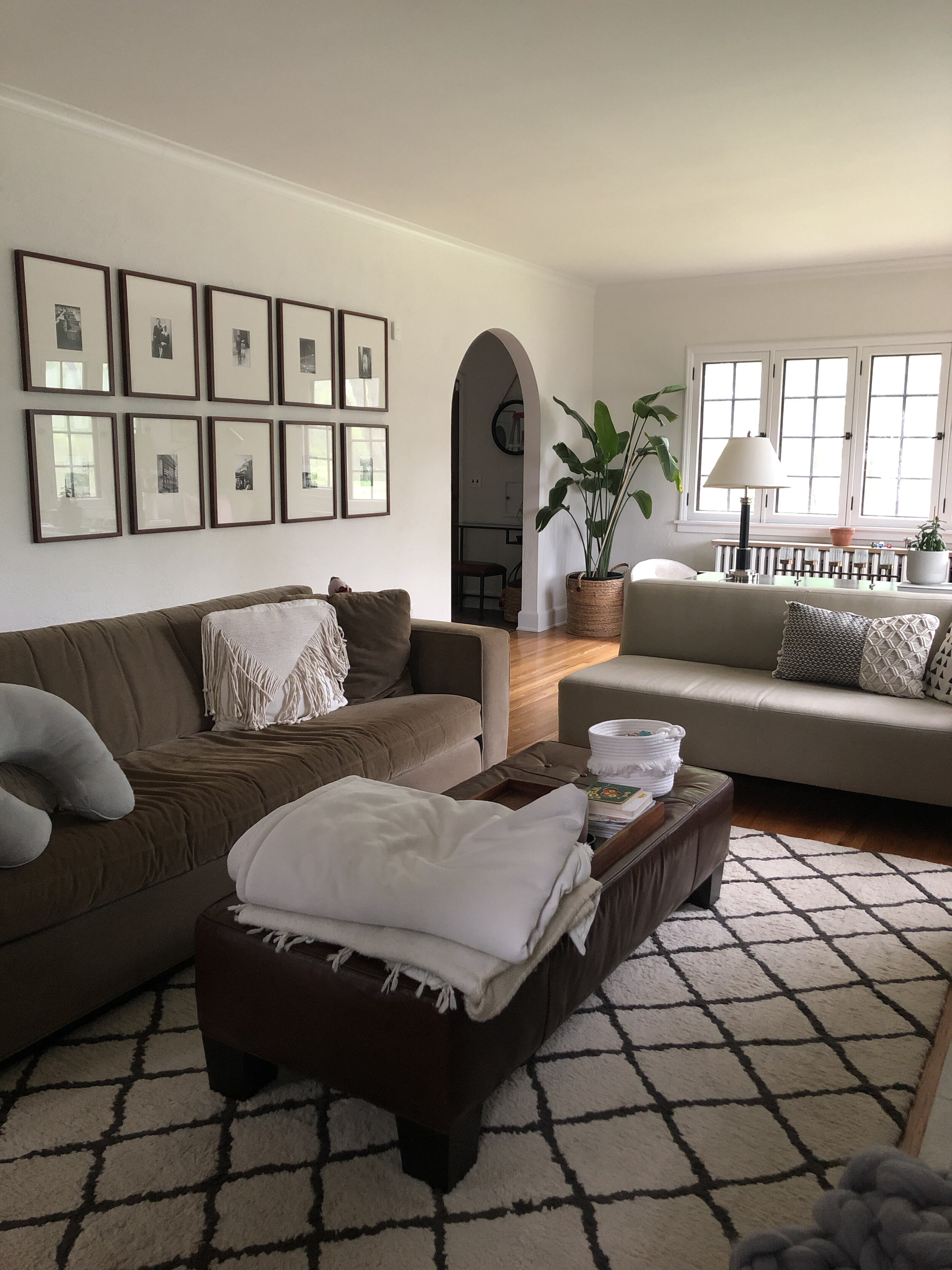 I have a degree in interior design, worked in both residential + commercial design firms and have designed our rental spaces like this one. However, when it came to our own living room, Iβve been a bit paralyzed with decision making and time constraints. While my style guide was a great starting point, there were moments of tension when Brian was unable to visualize certain aspects of my design vision for this space and there was no way that I was going to find time to photoshop my ideas. Iβm pretty sure this kind of tension is common between couples when it comes to home & design.