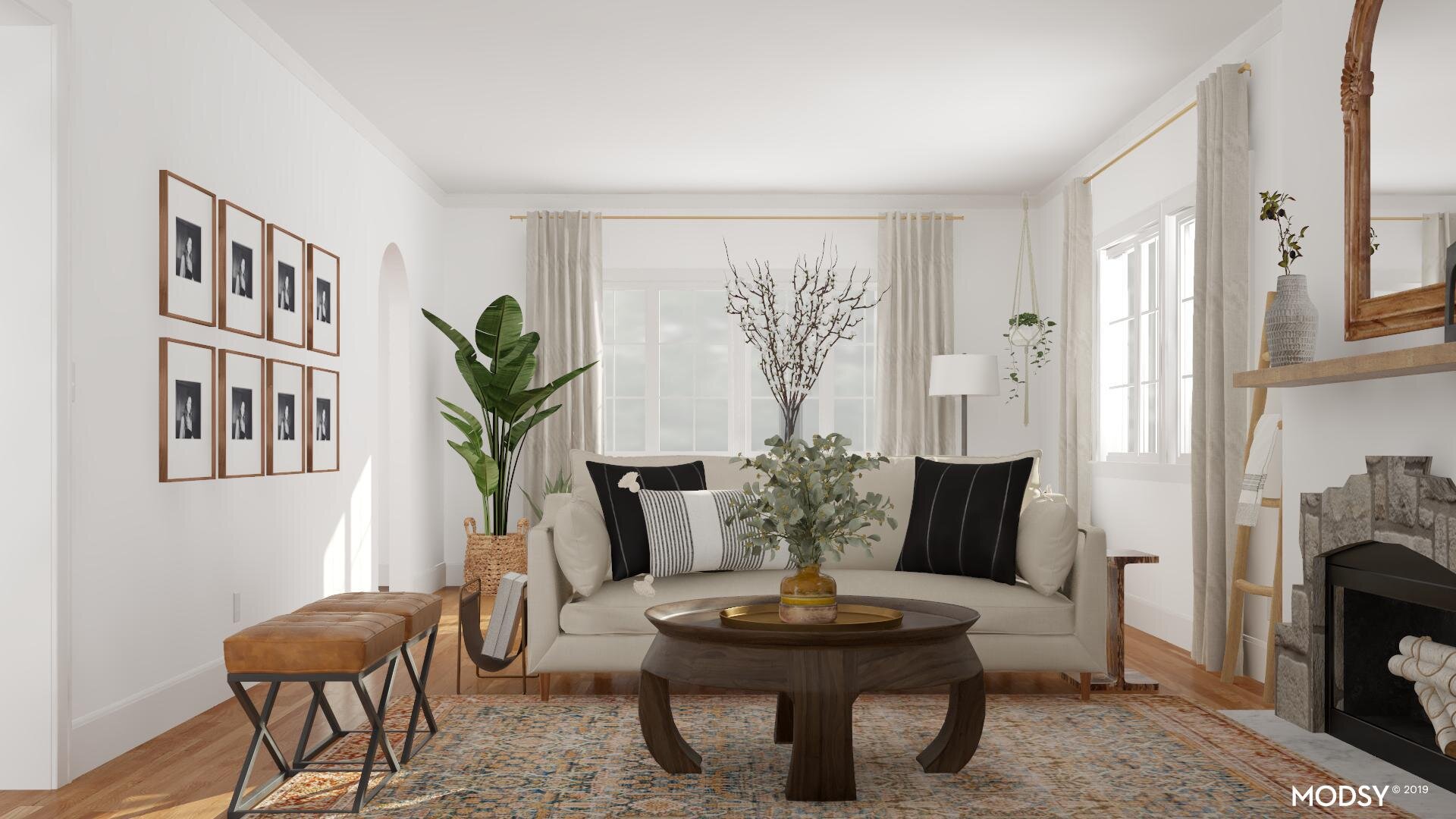 Which is why Modsy was such a great resource for us.Β They helped me and Brian come together on a design plan and got us closer to finishing up our living room makeover. Modsy is an online interior design service that delivers highly realistic 3D designs of your exact room filled with shoppable pieces of furniture from top retailers – so you can virtually βtry onβ products and designs before you buy. How amazing is that??? Keep on reading to get a glimpse of where weβre heading for the living room!